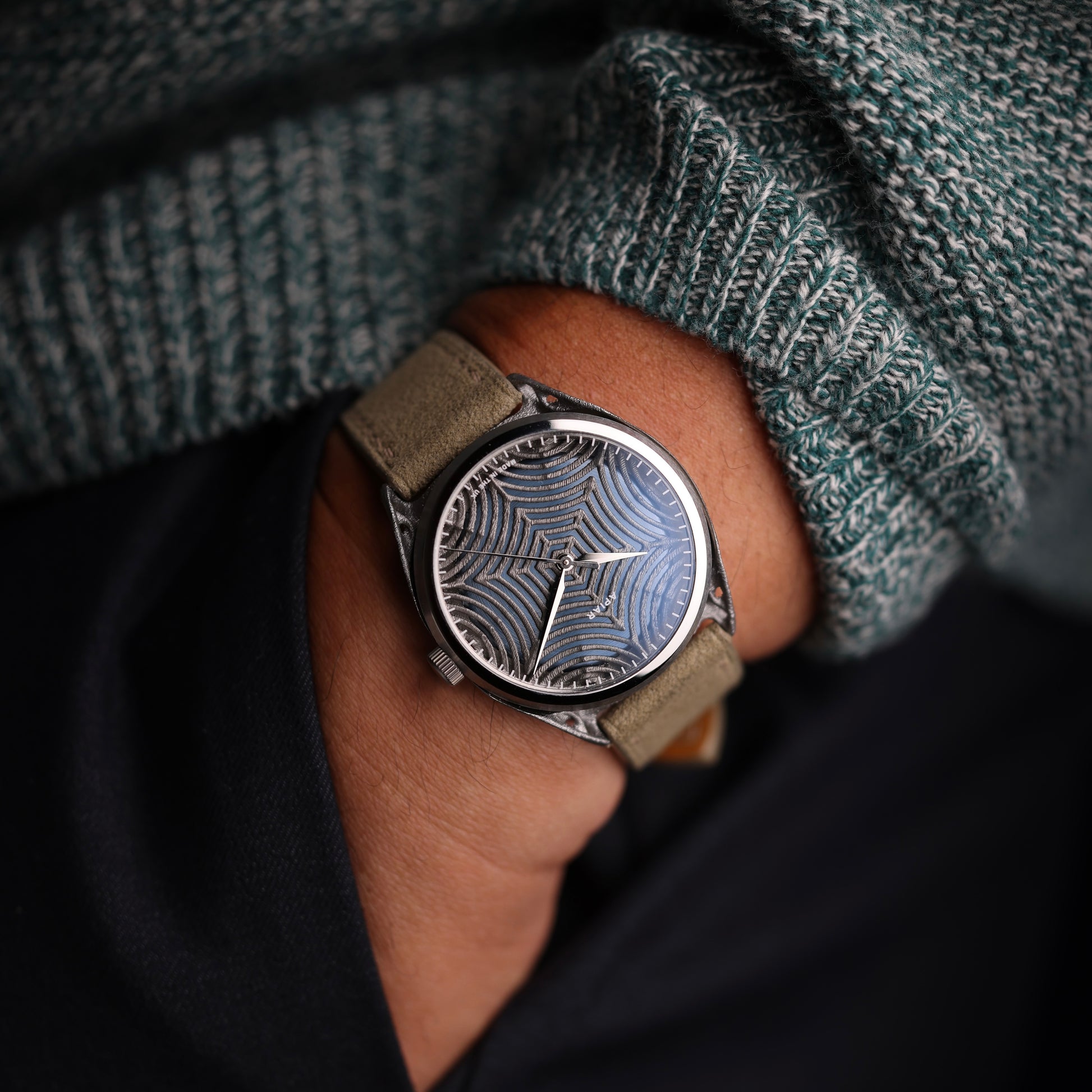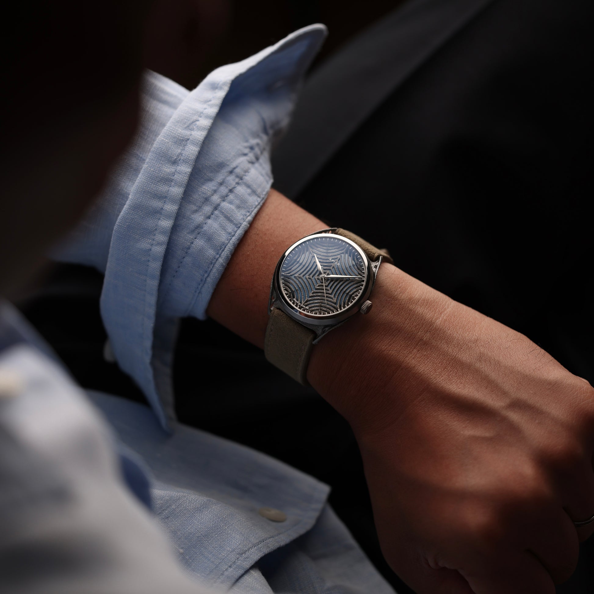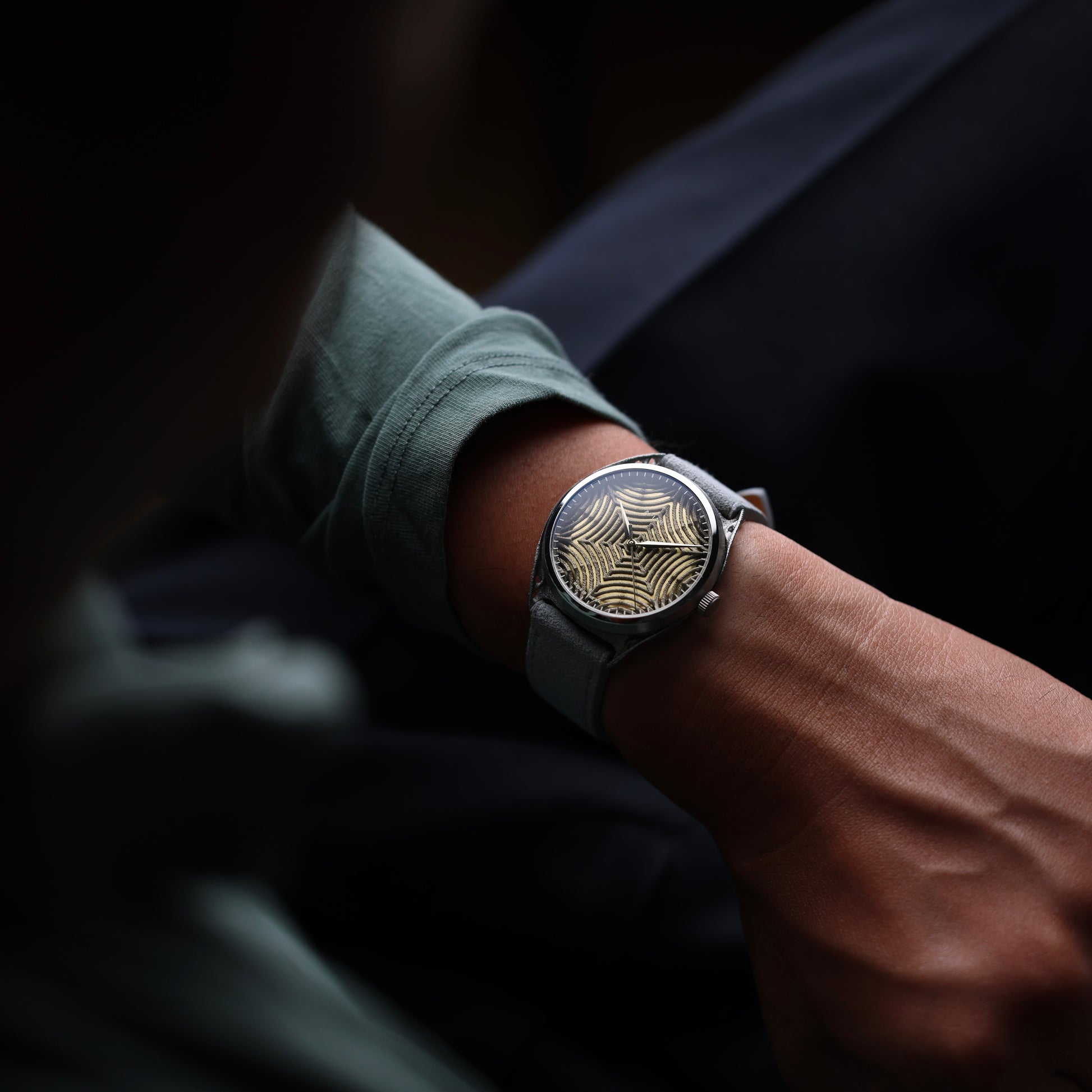 Gen1.0 launches in two dial finishes, each chosen to highlight the architecture of the watch in a different way. Dusk is a deep, technical blue-grey, inspired by engineering blueprints. Understated by design, it sharpens focus on the watch’s webbed structure without competing with it. Dawn is brushed gold: refined, warm, and quietly confident. Its anodised finish catches the light across every ridge and recess, revealing detail through contrast and not decoration. Two tones. Two ways to frame the same machine.