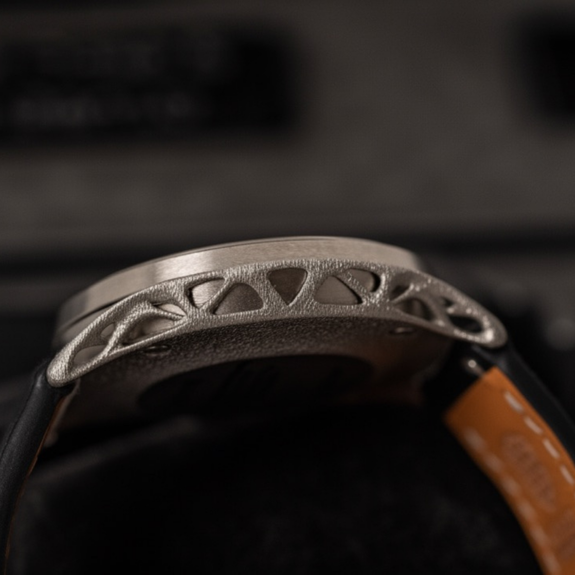 The Gen1.0 is a groundbreaking timepiece that brings together advanced additive manufacturing, generative design-inspired aesthetics, and precision British engineering. Crafted from aerospace-grade titanium, this watch features intricate, organic geometries that would be impossible to achieve with traditional manufacturing methods.